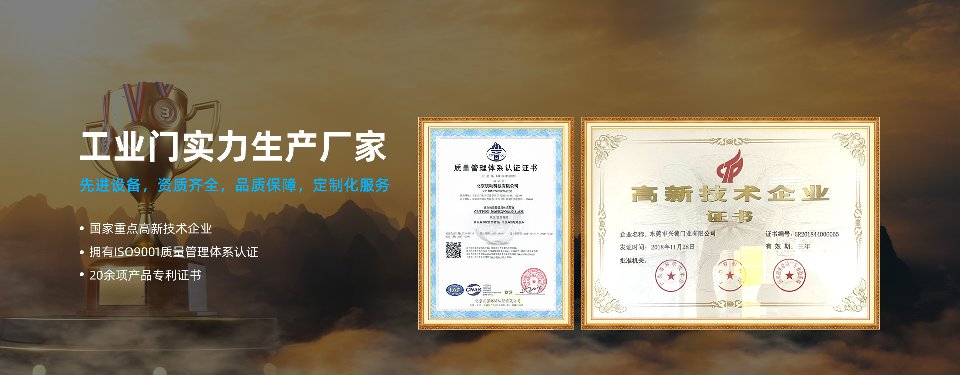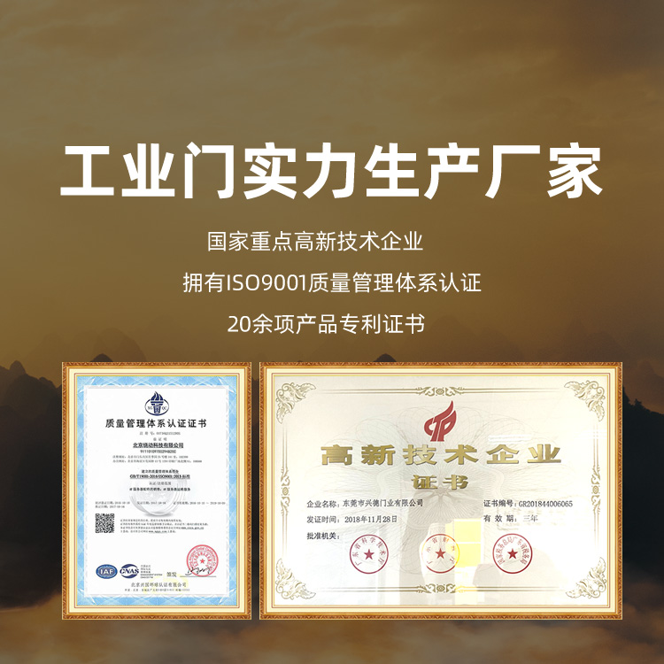 東莞市興德門業有限公司是以生產滾筒式快速軟簾門、快速卷簾門、快速門、快速自動門、高速門、高速卷門、高速卷 簾門、自動門、快速堆積門、金屬自由門、工業卷簾門、滑升門、pvc透明軟門簾、磁吸門簾、推拉磁鐵門簾、透明軟板、防塵防靜電工程等方面的開發、設計與生產、銷售于一體的高新技術企業,公司實力雄厚,專 注于產品十年余載,產品暢銷各地。